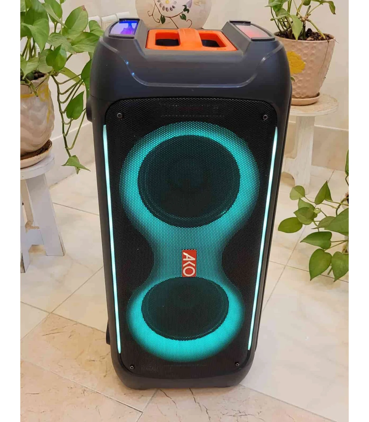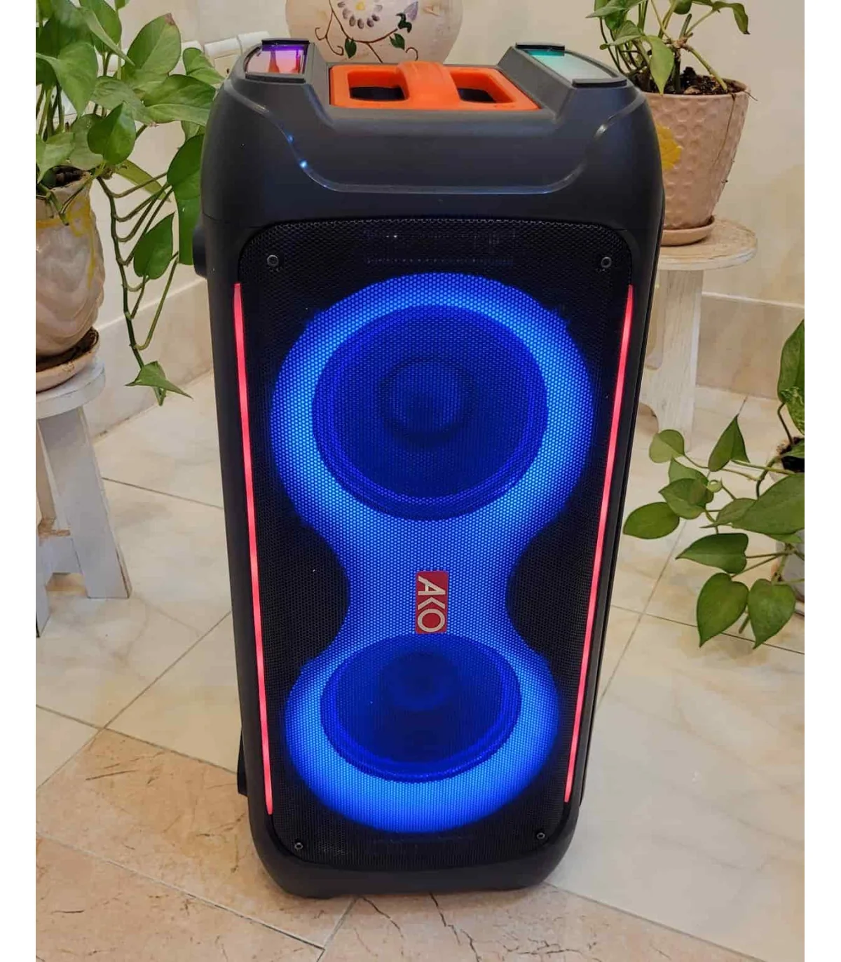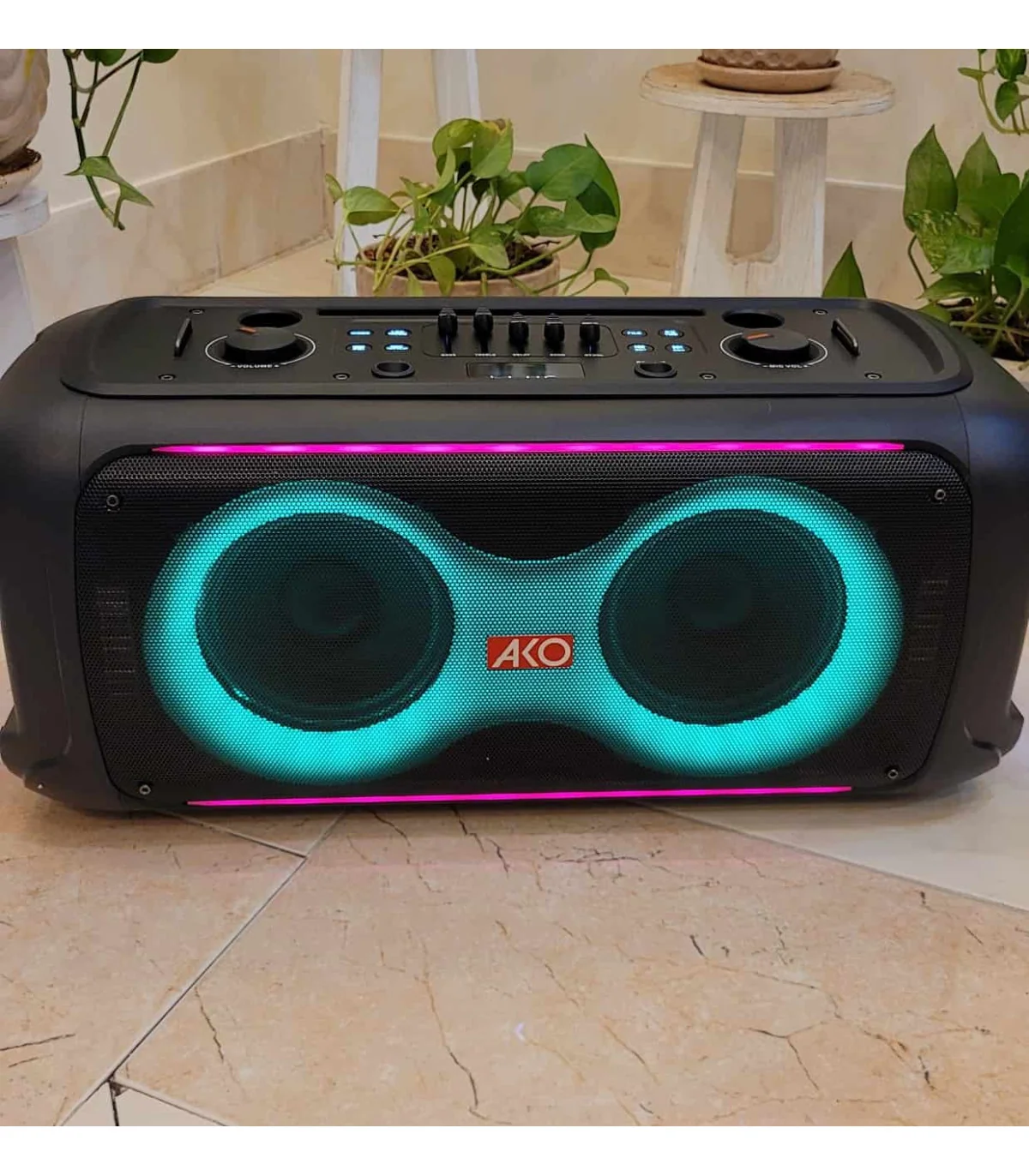اگر دنبال یک اسپیکر بلوتوثی **واقعاً پرقدرت** هستی که هم صداش راضی‌کننده باشه، هم ظاهرش چشم‌گیر و هم امکاناتش کامل، **AKO Sound Box 800** دقیقاً همون مدلیه که ناامیدت نمی‌کنه. این اسپیکر با خروجی صدای قوی و بیس عمیق، فضای مهمونی، دورهمی یا حتی فضای باز رو کاملاً پوشش می‌ده و صدا رو بدون افت کیفیت پخش می‌کنه.